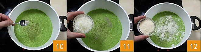 season with white pepper 10; add the grated Pecorino 11 and Grana Padano DOP 12, mix well, and keep warm.