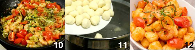 Meanwhile, after bringing a pot of salted water to a boil, boil the gnocchi 11, drain them well, and add them to the sauce in the pan. Serve your hot leek and shrimp gnocchi with a sprinkle of fresh parsley 12.