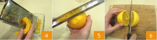 Then proceed to grate the raw pumpkin 4. Also grate the orange zest and set aside 5. Then cut the orange in half 6