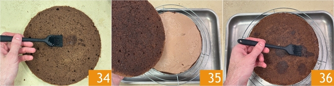 Take the second disk, soak 34 and flip onto the filled part 35, then soak the top: place in the refrigerator and take care of the glaze 36.