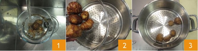 To make the Jerusalem artichoke bread, first wash the Jerusalem artichokes under running water 1, then place them in a steamer 2 and cook for about 15-20 minutes 3, or until they are soft. Steaming allows you to obtain a soft but not watery pulp.