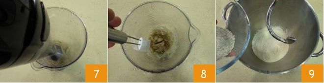 and blend everything 7 until you get a smooth puree 8. Set aside and pour the flours into the bowl of a stand mixer fitted with a hook 9,