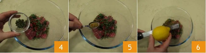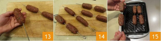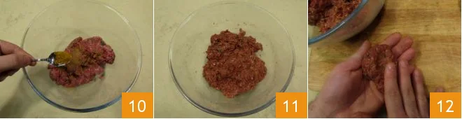then add the ras el hanout 10 and mix everything again 11. Shape into elongated meatballs, each about 3 oz with the mixture you prepared 12,