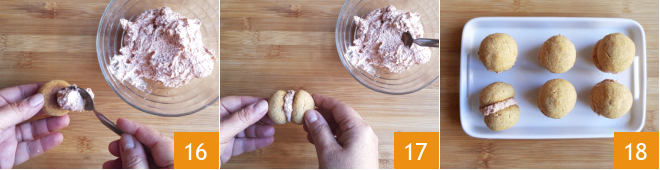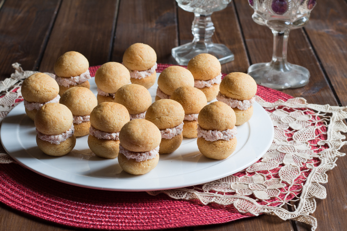 Fill half of the cookies with a teaspoon of cream 16 and pair them with the remaining cookies 17. Your lady's kisses with mortadella are ready to be served 18!