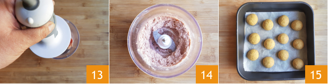 Add salt to taste and blend with an immersion mixer 13 to obtain a smooth and homogeneous cream 14. Once the cookies' baking time is over, remove from the oven and let them cool 15.
