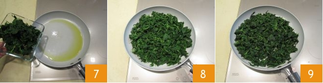 Pour the oil into a large pan, add the garlic and let it brown; then remove it, add the nettles (7-8) and sauté them for a few minutes 9. Then turn off the heat and set aside.