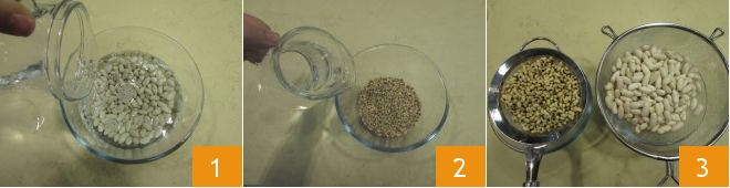 and immerse them in cold water until ready to use 10. After 50 minutes, the beans will be tender to the touch, rinse the lentils 11 and add them to the pot 12.