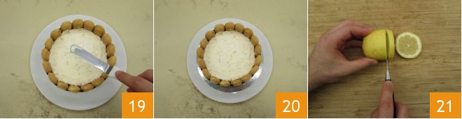 and carefully level the surface 19. Put the dessert in the freezer for about an hour and in the meantime take care of the decoration 20. Then wash the lemon, slice it into 1/8-1/6 inch thick discs, and set them aside for a moment 21.