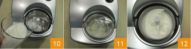 Pour the obtained mixture into the bowl of the previously cooled ice cream maker (follow the instructions on your ice cream maker to check how to proceed) 10. Let the sorbet churn for about 30-40 minutes 11 until completely cooled. Once you have a smooth and shiny cream 12, your sorbet will be ready to be served!