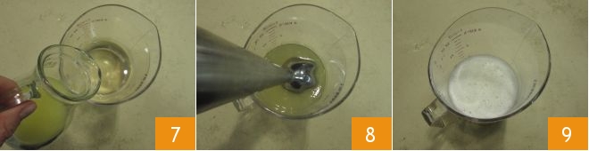 and the lemon juice 7. Blend the mixture with an immersion blender 8 until you get a light and frothy mixture 9.