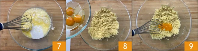 Vigorously mix with a whisk to combine the mixture 7. At this point, add one egg at a time 8, mixing each time with the whisk to fully incorporate 9.