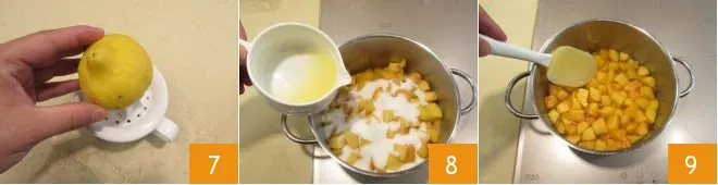 Squeeze a lemon 7 and add the juice to the pot 8. Stir 9 and let them macerate for no less than 7 hours but not more than 12 hours.