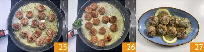 Transfer the meatballs back to the pan 23 and cook over low heat for a minute, stirring gently. Finally, garnish with grated lemon zest and parsley 26. Your lemon meatballs are ready to be served hot 27!
