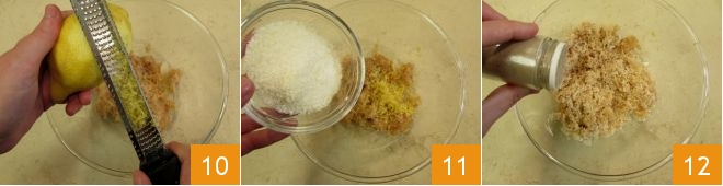 Transfer the pulp to a bowl and add the grated zest of an untreated lemon 10, the grated Pecorino cheese 11, salt and pepper to taste 12