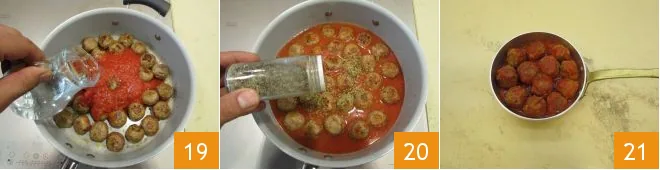 add water, season with salt and pepper 20, lower the heat and continue cooking for 15-20 minutes. Once ready, season with dried oregano and enjoy your meatballs with tomato sauce still hot 21!