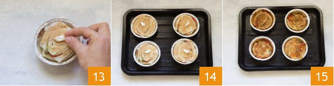 and a small piece of butter 13. Place your molds on a baking tray 14 and bake in a static oven preheated to 356°F for 30 minutes, with the last 5 minutes under the grill. Once cooked, the Mediterranean fennel cakes will be well gratinated, serve them hot 15!