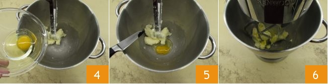then add the egg 4 and the seeds from half a vanilla pod 5. Continue mixing until well combined 6.