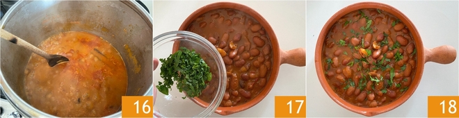 Let it thicken on the stove without the lid, stirring for a few more minutes until you reach the desired consistency 16. Finally, scent with chopped parsley 17 and serve your Mexican beans 18!