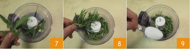 sage leaves 7, rosemary sprigs 8, and coarse salt 9.