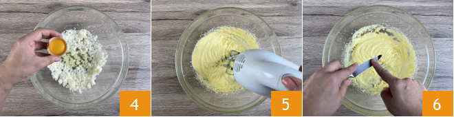 Incorporate the egg 4 and mix again with the beaters to obtain a smooth dough 5. At this point, flavor with the seeds of the vanilla pod 6.