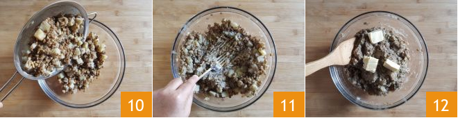 Sprinkle with plenty of breadcrumbs 25. Place a small piece of butter on top 26 and bake on the middle rack of the preheated oven at 355°F in static mode for about 30 minutes. Remove the well-golden cakes from the oven 27, unmold, and serve them hot.