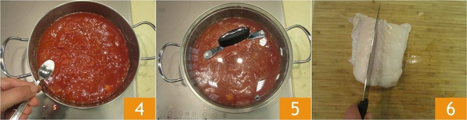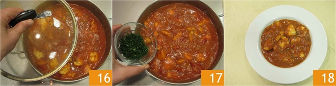 add salt, and a pinch of baking soda to remove the acidity from the tomato 4. Lower the heat and let it cook for 25-30 minutes with the lid on 5. After 20 minutes, cut the monkfish in half 6