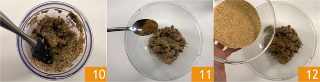 Operate the mixer to finely chop the mushrooms 10. Pour the purée into a bowl, then add the cumin 11 and breadcrumbs 12.