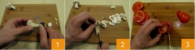 To prepare the mushroom quesadillas, start with the How to Clean Porcini Mushrooms; with a sharp knife with a smooth blade, remove the earthy part on the stem, gently scraping it until all traces of dirt are removed 1. If the mushrooms are fairly clean, remove the few remaining dirt residues with a brush or with a cotton cloth, if they are still very dirty, quickly pass them under a stream of cold running water. Once cleaned, cut the whole mushrooms lengthwise and set aside 2. Wash the tomatoes under plenty of fresh running water, cut them into 1 cm (about 0.4 inches) slices and then into cubes 3.