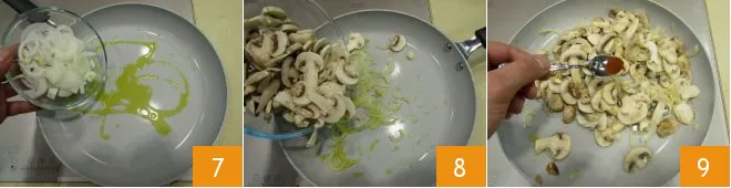 and stew the onion for 5 minutes 7. Add the mushrooms, cook for another 5 minutes, 8 then add the chili powder 9.