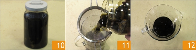 Let it macerate in full sunlight for 40 days, making sure to shake it every day to mix it. After 40 days 10, filter it into a pitcher 11, removing the walnuts and keeping aside only the alcohol, which will have absorbed all the flavors 12.
