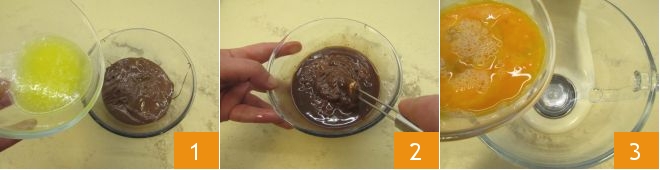 To prepare Nutella brownies, first melt the butter in a small saucepan and heat the Nutella in a double boiler (or in the microwave for a few seconds). Combine the warm melted butter with the warm Nutella 1 and stir with a spatula to mix well 2: this way, you will obtain a smooth and lump-free cream. Let the butter and Nutella mixture cool slightly, in the meantime, pour the room temperature eggs into a stand mixer with a whisk attachment (alternatively, you can use an electric hand mixer) 3.