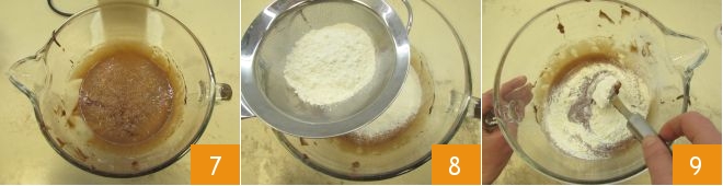 and continue whisking until well combined: don't worry if the mixture deflates, it's normal 7. Remove the bowl from the mixer and sift the flour into the mixture 8, then mix well with a spatula, making a folding motion from bottom to top 9.