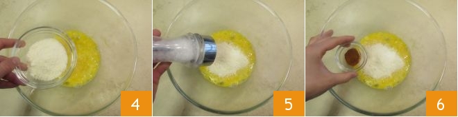 Season with grated Parmesan cheese 4, salt 5, and sweet paprika 6.