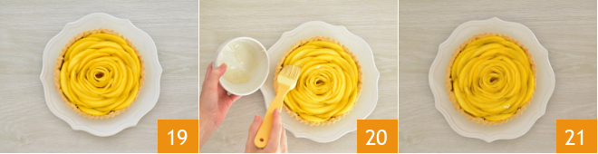 to create a rose 19. Brush the surface with cold jelly 20 and let the tart rest in the fridge for 20 minutes 21. Serve and enjoy.