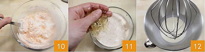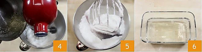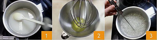 add it slowly to the egg whites 4 and continue to whip until you get a foamy and shiny mixture 5. Soften the gelatin in cold water 6.