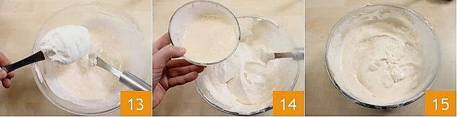 Gently fold the cream into the mixture 13 and finally add the part where you dissolved the gelatin 14. Cover and leave the mousse in the refrigerator to set for at least an hour 15.