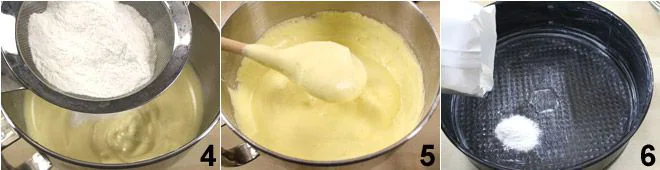 If you desire, once the mixture is well whipped, you can add the seeds of the vanilla bean that you have halved and continue to whip for a few seconds to mix it well and flavor the batter. At this point, you can add the rice flour that you have previously sifted well 4: mix everything with a wooden spoon until you obtain a homogeneous mixture, being careful not to deflate it 5.
