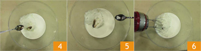 the vanilla extract 4 and the salt 5. Work the ingredients with an electric mixer for about 2 minutes 6.