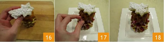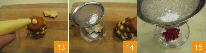 Finish with a dollop of custard cream 13. Dust with powdered sugar both the star 14 and the currants, deseeded in a small bowl 15.