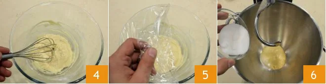 until you get a homogeneous dough 4; cover with plastic wrap 5 and let rise for 1 hour at room temperature until it has doubled in volume. After the necessary time, pour the starter dough into the bowl of a stand mixer, add the sugar 6