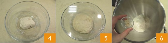 Form a small dough ball 4, cover with plastic wrap, and let it mature at room temperature for at least 8 hours. As soon as the starter dough is mature 5, you can start working on the dough. In a stand mixer fitted with a dough hook, pour in the flours, the yeast 6,