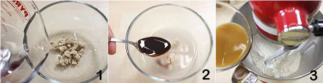 To prepare bread filled with lard and figs, start by making the bread dough (for more details on making bread doughBread dough): dissolve the yeast in a little warm water (taken from the total amount of water provided for the recipe) 1 along with a teaspoon of malt (or sugar, if you are without this particular ingredient) 2. Separately, sift together all-purpose flour and Manitoba flour and place them in the stand mixer, then add the yeast and malt mixture and start the appliance to combine all the ingredients 3.