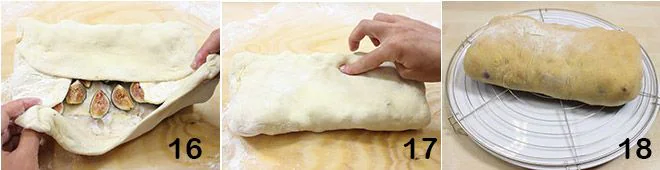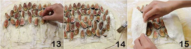 then place the figs 13. Brush the edges of the dough with water 14 and start closing the dough: fold the right edge inward, then the left one 15