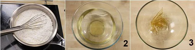 To prepare the raspberry panna cotta, heat the cream together with the sugar 1 and the vanilla bean split in half lengthwise in a saucepan over low heat. Stir with a whisk and use a thermometer to ensure the liquid reaches 176/194 Fahrenheit, avoiding bringing it to a boil. Meanwhile, soak the gelatin sheets in cold water 2 for 10 minutes and then squeeze them well 3.