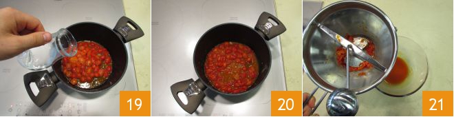 Then add the water 19. Let it cook for 5 minutes over medium heat 20. Then pass it through a food mill 20