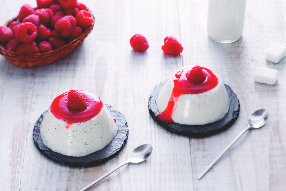 Coconut panna cotta with raspberry coulis