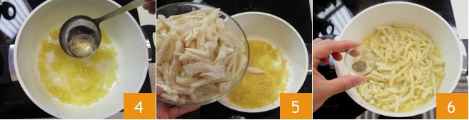 let it soften for about ten minutes, adding some beef broth 4. Once the onion is soft, add the tripe 5 and brown it for 5-6 minutes. Season with salt and pepper 6 and
