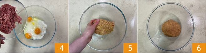Add the chopped prosciutto 4, season with salt and pepper, then knead 5 until you obtain a homogeneous mixture 6. If the dough is too soft, add a bit more breadcrumbs; if it's too dry, moisten it with a few tablespoons of cold broth. Let the dough rest for 15-20 minutes at room temperature.
