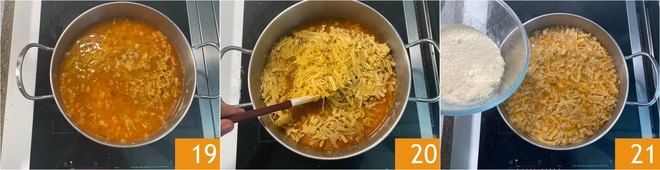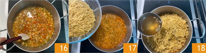 Stir and cook over medium heat for 25 minutes 16. After this time, add the mixed pasta 17 and cover just enough with the remaining vegetable broth 18.