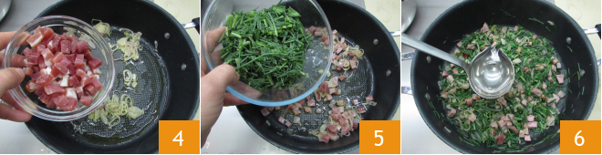 Place a pot with plenty of water on the stove, and when it boils, salt it and cook the penne. Meanwhile, prepare the sauce. In a pan, pour a drizzle of oil and let the shallot soften over low heat for a few minutes before adding the speck. Let the speck cubes brown for a few minutes, then 4 add the agretti 5 and moisten them with a ladleful of pasta cooking water. Adjust the salt carefully, considering that the speck is already savory; cook for about ten minutes 6.